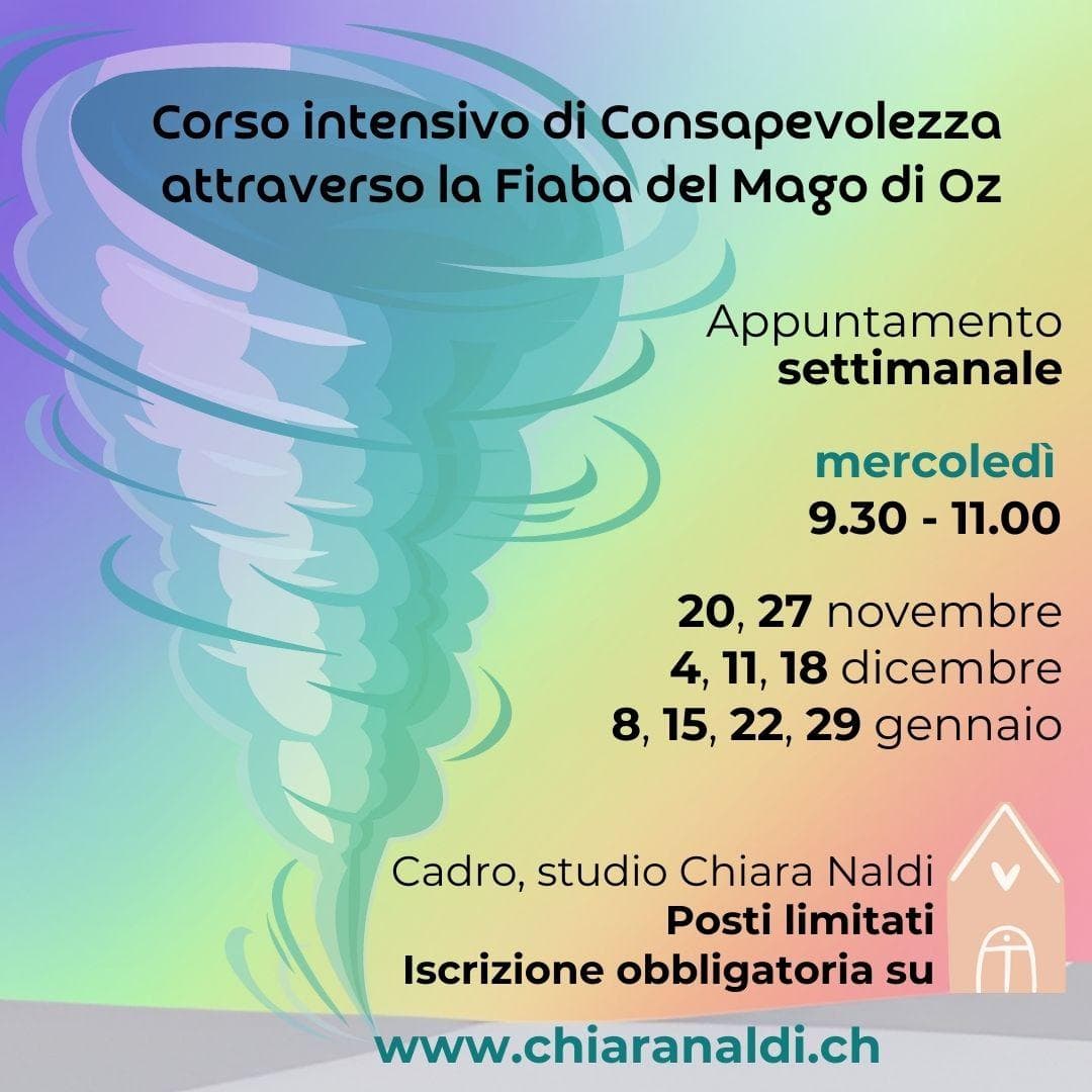 Dopo le tre serate in libreria, un nuovo appuntamento di consapevolezza utilizzando il potente tramite della fiaba del Mago di Oz. La narrazione simbolica apre le porte ad un profondo dialogo con l’anima e ad uno svelamento dei nostri processi interiori, riportandoci al nostro vissuto quotidiano.
