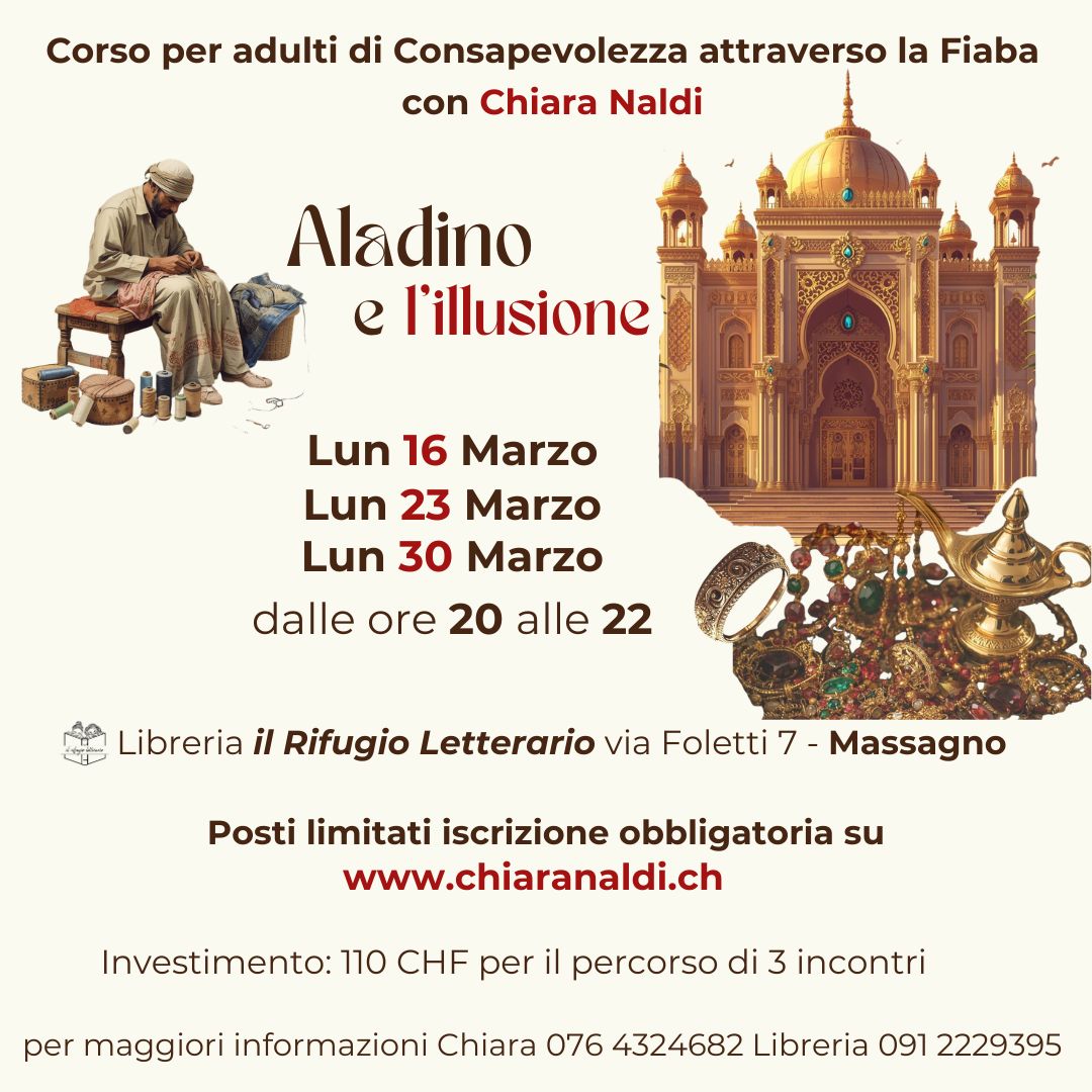 Per dare la possibilità a chi non ha potuto essere presente al primo appuntamento, si rinnova questa bella collaborazione con la libreria Il Rifugio Letterario di Massagno. Grazie ad alcuni elementi chiave della fiaba inizieremo a svelare le nostre attitudini e il nostro potenziale, tra riflessioni, meditazioni e condivisioni spontanee.